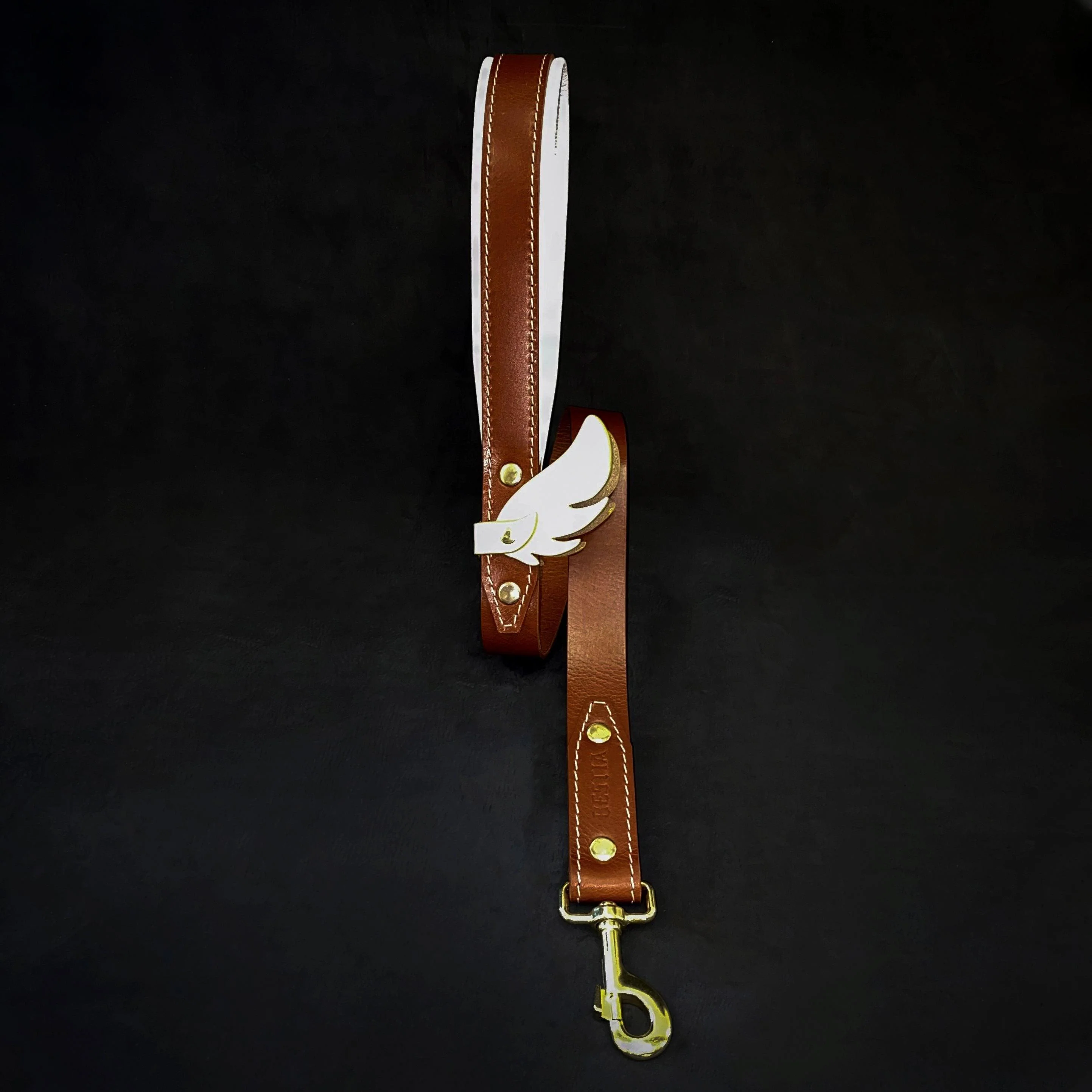 - Signature white leather wings over a premium brown leather base